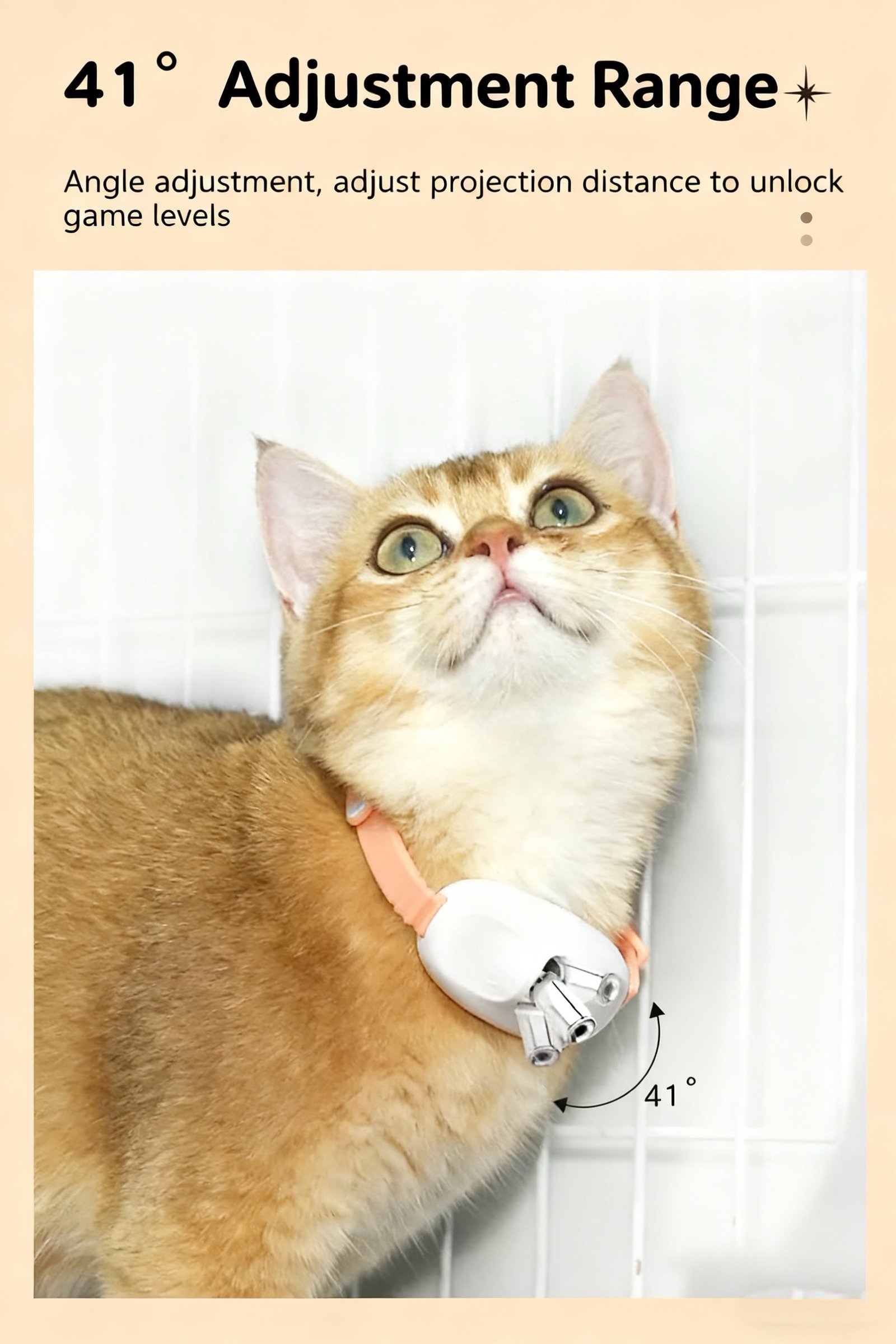 - 【Automatic Laser Collar Cat Toy】 Adjust the strap from 7.8-12.2″ to cat’s neck. Adjust 41° laser head position the laser beam to the appropriate distance from your cat, turn it on. Your cat will be irresistibly drawn to chase the laser. Enjoy hands free playtime with your cat.