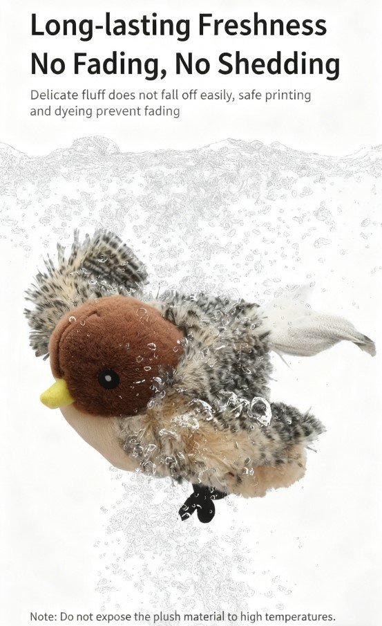 Safe, Soft & Durable Materials Made from premium plush fabric with durable filling, this toy is gentle on paws and teeth yet strong enough for repeated play. The detachable shell is easy to clean, and the feather tail plus catnip pouch make the flying bird cat toys for indoor cats even more irresistible.