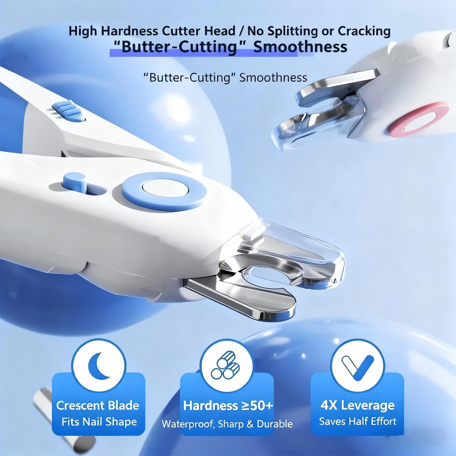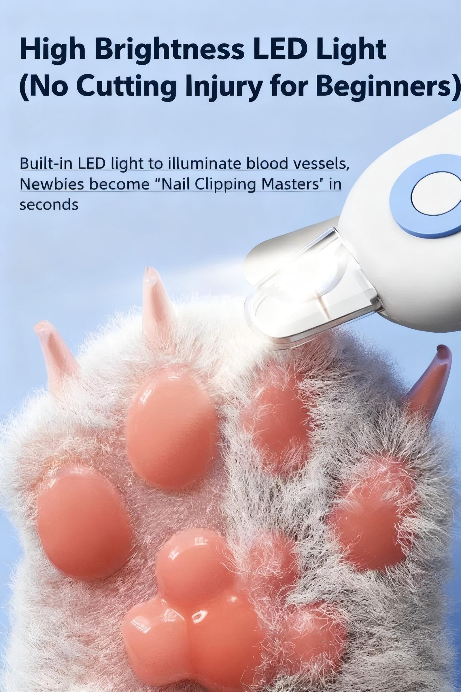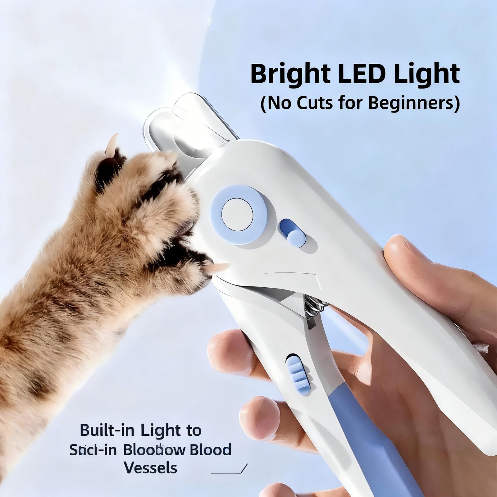 BUILT-IN LED LIGHT: Our LED light illuminates light-colored nails for a safer, easier cutting experience, perfect for families with dogs and cats. (Note: LED light may not be as effective on dark nails.)